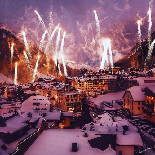 Fireworks at a ski resort. Austria.